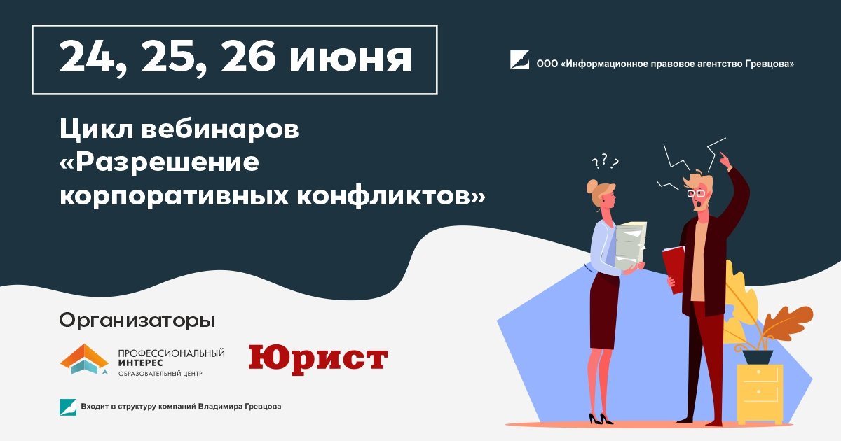 24, 25 и 26 июня Образовательный центр «Профессиональный интерес» проведет цикл вебинаров «Разрешение корпоративных конфликтов».
