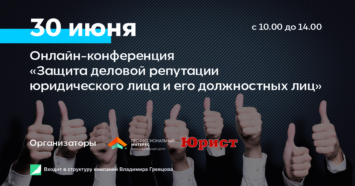 В связи с этим Образовательный центр «Профессиональный интерес» 30 июня проведет онлайн-конференцию на тему «Защита деловой репутации юридического лица и его должностных лиц».