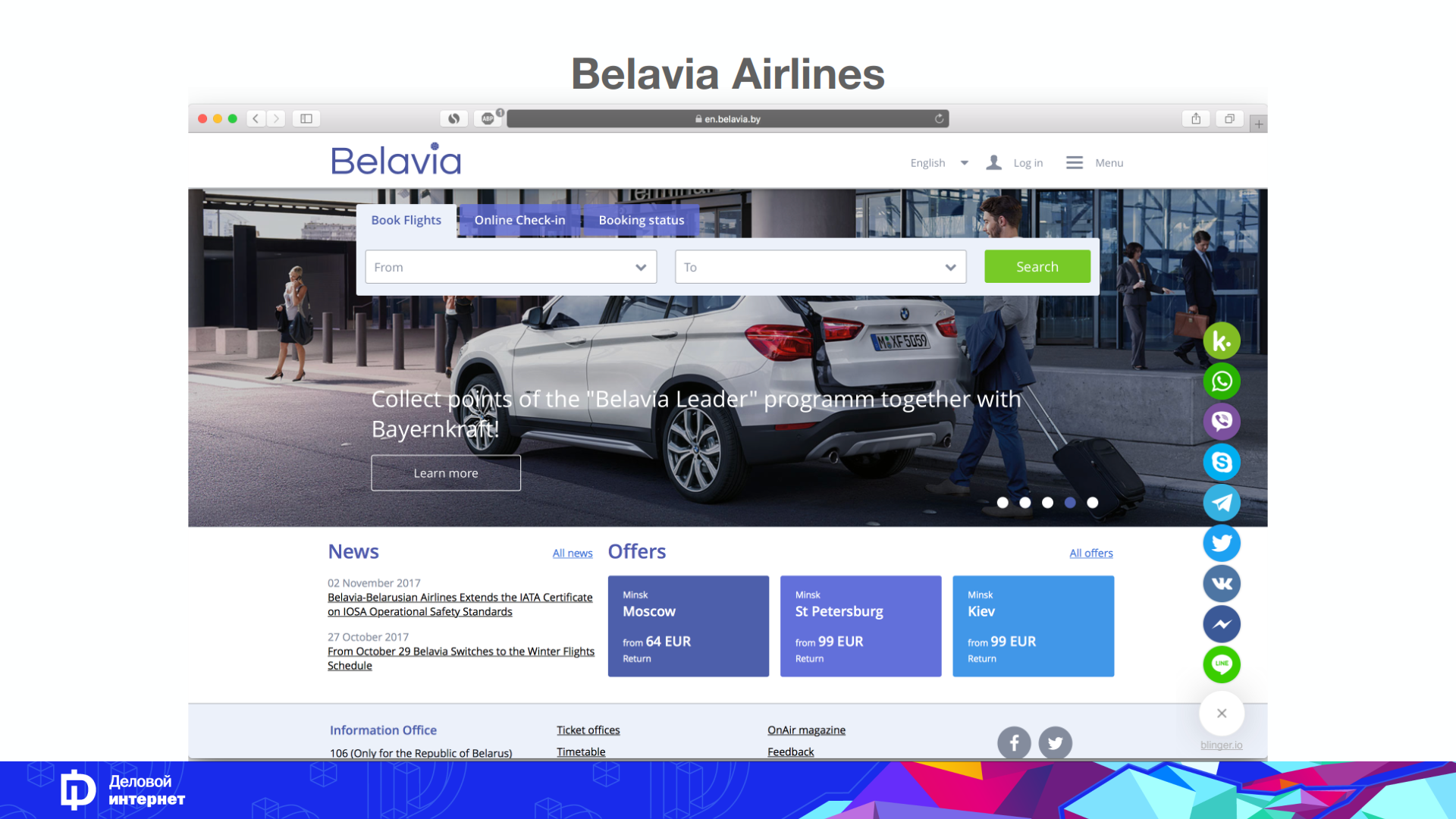 «Я горжусь тем, что БЕЛАВИА – первая в мире авиакомпания, которая стала поддерживать своих клиентов в режиме реального времени практически во всех мессенджерах. Правда, у компании есть проблемы со временем отклика – ожидание составляет 10-15 минут – но все равно это огромный шаг навстречу клиенту», - говорит Евгений Бессчастнов.
