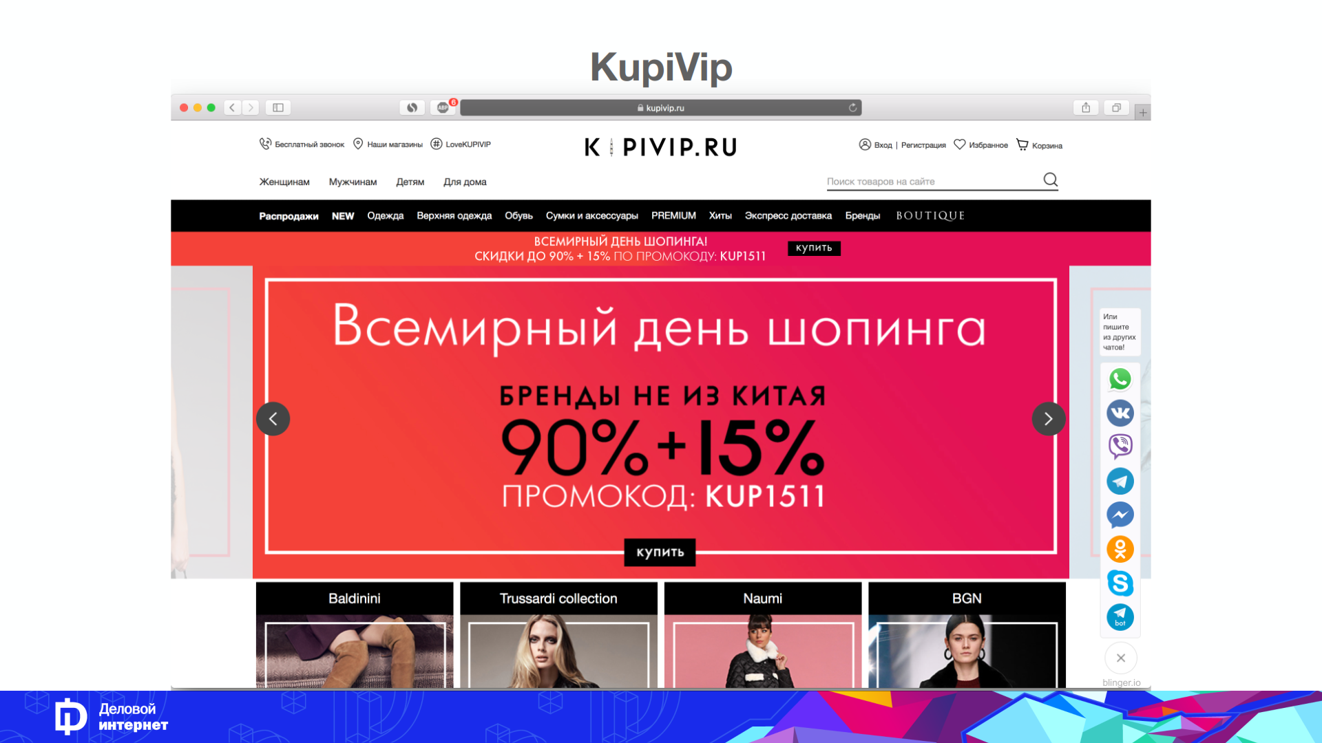 «Еще один кейс российской компании KupiVip, которая торгует люксовой брендовой одеждой. Год назад мы начали с ними сотрудничество, внедрив сервис общения с клиентами посредством мессенджеров. По нашим данным лояльность клиентов увеличилась в разы», - сказал основатель Blinger.